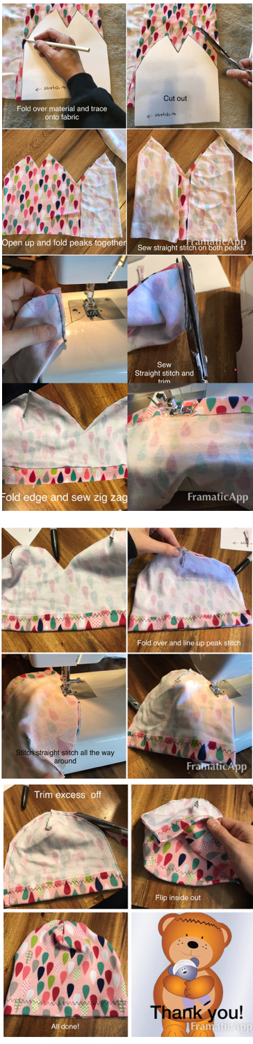 If you are interested in making beanie hats we use Interlock Stretch Knit fabric (Can be found at Joann’s by searching “Doodles Interlock”) Here is a easy pattern to use (just print this out on paper/cardstock 8.5×11). See below for instructions on how I make them. You can modify this however you want to make them smaller or a little bigger. Hats can be mailed to Summer Ehmann Cranio Care Bears PO Box 10213 Kalispell, MT 59904
