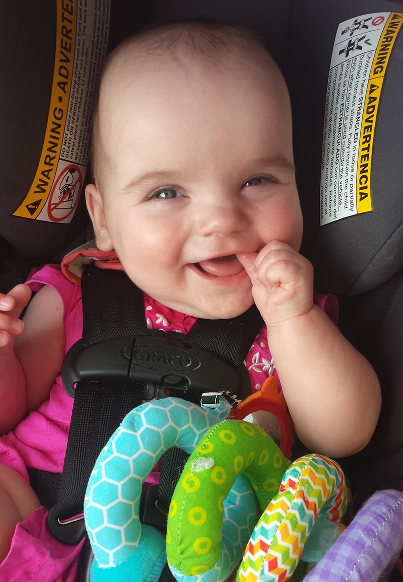 Aubrey was born 1/27/15. My lactation consultant noticed her head shape at my visit when she was about 1 1/2 weeks old. We then brought it up to our pediatrician at our next visit, and we were referred to the University of Michigan. At 2 months old at her visit they informed us she had Sagittal Synostosis, and set up a surgery date for 8/19/15. It was quite shocking to find out she needed surgery for her skull. I had never heard of craniosynostosis! We did get a second opinion from Dr. Fearon in Texas, and got another consult by Dr. Buchman at the University of Michigan, and decided to stay local. The 4 1/2 months of waiting on the surgery day was very hard, but I had faith that everything would be okay. I met another mom whose son had the surgery at U of M a year and a half ago, and that helped a lot. Having a support network helped ease my fears. I checked the Craniosynostosis support page on Facebook often.