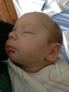 The surgery lasted about 4 hours (from prep to recovery) and was a complete success! When they finally let us go back and see Balian, Dennis and I were amazed at how great he looked. They had him pretty medicated still and were transferring him up to the PICU. After the surgery you could already see a difference, it was nice and round. I just wanted to pick him up and hold him forever and take all his pain away. Words cannot even describe the range of emotions I had that day, I wish that feeling on no one. The rest of the day Balian did great, they had him on some type of Tylenol to help with pain control so he slept most of the time in my arms. That was one of the best feelings. To be able to hold him again was so amazing. We were very lucky that he had mild swelling. Saturday, he had more swelling but not enough to close his eyes. Later that day the Dr. came in and told us that he was being released and we could take our baby boy home again. He was very lucky to only stay in the hospital for little over 24 hours. I’m so thankful for the nurses at Children’s Hospital of Alabama were amazing; they took such good care of Balian. Amen, the power of prayer and the determination of this strong willed little boy was absolutely amazing.