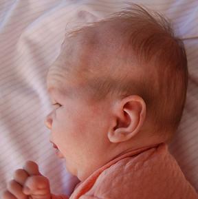 I first noticed a ridge on the left side of Bella’s skull, above her forehead, when she was a few days old. Our pediatrician said not to worry as most infants’ heads are irregularly shaped. I took Bella back to the pediatrician when she was 10 days old because her breathing was abnormal. Although the pediatrician advised us not to worry about the irregularity when we called over the weekend, I followed my intuition and brought her in the following Tuesday. The doctor didn’t seem concerned and casually said Bella was probably playing with her vocal chords. When I mentioned the term “trachea malatia” (something I had researched over the weekend) she looked surprised that I knew the term and said if she had it, it was very mild.