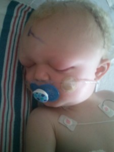 My sons name is Cameron and he was diagnosed with metopic craniosynostosis earlier this year. I had fought with my doctor about the ridge on his forehead. For 2 year my doctor told me it was normal until I demanded he send us to a specialist. We saw the specialist who then sent us up to Gillette Children’s Hospital in St. Paul Minnesota. Cameron’s speech is mostly unrecognizable. He is 2 1/2 now and his speech is at around 16 months. He has a 5 word vocabulary and behavioral problems. He is currently seeing a occupational therapist because he also has a problem with certain textures. He will only eat high taste foods. His choices are few, he eats lots of yogurt, hot dogs, chips, crackers, bananas and spaghetti occasionally. I can get him to drink ensure every day so thank God for that. He also sees a speech therapist. At our first appt at Gillette Children’s hospital Dr. Wood, the cranial specialist also recommended that we take Cameron to see a behavioral physician to have him tested for autism. We have an appt for Cameron to see Dr. Noble at Blacks Children’s Hospital in Des Moines Iowa in December. June 21 of this year Cameron had surgery for Metopic Craniosynosis. We had a few minor set backs after surgery. Cameron has to be sedated for 48 hours after surgery instead of 24 hours because they tried to take him off sedation and he tried ripping out his drain tube and his central line in his neck. He could open his left eye on the 3rd day after surgery and we were able to head home on the 5th day. His sutures are now healed completely and where his central line was is looking better after getting MRSA staph infection. We are schedule to have a check up with Dr. Wood and the neurosurgeon this week but With finances the way they are we can make it for a while. I have been a stay at home mom for the last year and my husband was laid off a month before my sons surgery. We are extremely blessed to have such amazing doctors and nurses. Cameroons vocabulary has increased dramatically since surgery! He is now enjoying having conversations with his 3 sisters who are 8, 7 & 6 months. We thank God every day for our little boy who has been through hell and back in his lifetime. We are excited to see what other milestones he will hit next!