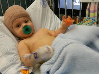 Gavin was born October 2nd 2011. I had a completely normal pregnancy until 30 weeks. I had a normal check up where they found protein in my urine and they realized I had developed preeclampsia. I was admitted to the hospital on a Friday, then on Sunday morning my blood pressure shot up even higher and they put me to sleep. The next thing I knew I woke up alone, no baby, no one. It was terrifying. I had no clue how he was. But from the moment Gavin was born he was a fighter. He was supposed to be on a ventilator but he ended up breathing on his own. He is my personal miracle. He had to have a chest tube for a few days to help him breathe. He stayed in the hospital for 5 weeks but most of that time was spent teaching him how to eat, he was too small to know how to at first, and then gaining weight. When we brought him home from the hospital he had to be on caffeine to help remind him to breathe and a heart monitor. He had all of that for about 4 months. Finally we had our son home and completely fine. At his 1st check up with his pediatrician we asked her about his head shape and she told us it was just “preemie head” and it was from laying down so much in the hospital and his head would round out on his own. So we didn’t think another thing about it. Then at his 6 month check up, his pediatrician told us that his soft spot had closed and his plates in his head had fused and gave him a diagnosis of craniosynostosis. We were very frustrated since she had previously told us everything was fine. So she sent us for a CAT Scan at Arkansas Children’s Hospital. A month later we saw his craniofacial surgeon who diagnosed him further with sagittal synotosis, she also told us that his pediatrician should have diagnosed him months ago and he should already have had surgery. We were given a surgery date of July 12th and we dreaded the day as it creeped closer. Four days before surgery we met with the neurosurgeon and did pre-op labs. Then the dreaded day finally came and we were at the hospital at 5:30 am. They admitted him and brought us back to a room. We waited there until 7:30 when they wheeled my wide awake baby away from me. I thought that was hard but there was more to come. Then after 5 long hours we were finally able to see him in the PICU. As we walked back I heard screaming in a very hoarse voice but I automatically knew it was my son. I walked back there and he was so sad and in so much pain it broke my heart in two. The only thing that comforted me was other parents saying in just a few days they would be up and playing. So I kept telling myself just 3 days, just 3 days, just 3 days. It was like a chant in my head. The first few hours were horrible, me and my husband took turns standing there and rubbing his belly and comforting him. After about nine hours he started feeling a little bit better. And from there he was only getting better all the time! After 24 hours he was moved from the PICU to the Neurosurgery floor. He was starting to play a little and move around and he even smiled occasionally. That night he slept in my arms and we were both much happier. The next day, just 2 days after surgery the craniofacial surgeon came and unwrapped him and removed all the tubes and he was released and we went home. We were so happy. He mostly slept and snuggled but for a few minutes at a time he would get up and play! We were so happy! The craniofacial surgeon was amazing, he made his incision only about 2 1/2 inches long and did the whole CVR surgery from that little incision. I am so thankful that Gavin did so amazing. He hardly swelled at all and he just did amazing the whole way through. I am so proud of my little rough guy!!