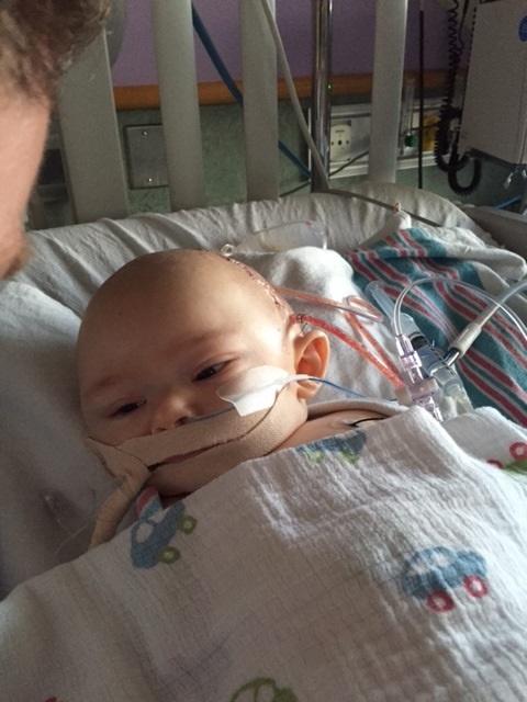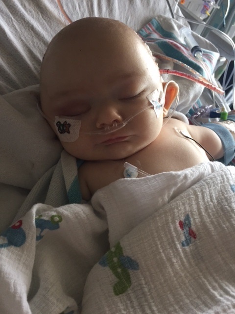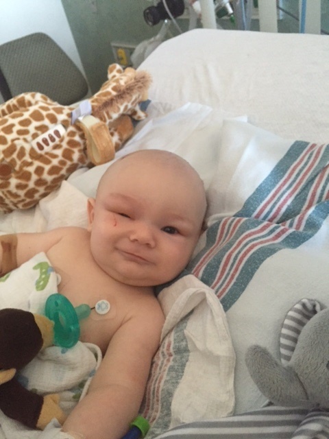 The LONGEST 2 hours of our lives as we waited finally getting the call that everything was done and that we could go back to see him. He struggled getting off of the ventilator and when we came back to see I was still in shocked though I prepared by talking with other cranio moms and reading cranio stories seeing your 4 month old baby like that nothing could prepare me for that. James had to remain on a ventilator for 24 hours since he was having a bit of trouble breathing on his own. We stayed at his bedside for the entire time. It was so hard seeing him like that but once the ventilator came out he turned the corner. He had a bit of swelling but both eyes never closed! Surgery was on a Thursday and on Sunday we were ready to go home and James’ swelling had already started to go down. He was smiling at us and coming back to normal. Although the scar looked intimidating it was so much better than I thought it would be. This baby was healing amazingly and was so much stronger than I ever thought.