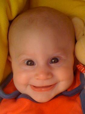 Joanna had her surgery at just under 6 months old to correct a prematurely fused metopic suture. She had a CVR and FOA, like most metopic babies, performed by a cranio facial surgeon and neuro surgeon here in Normandy, France. She was out of intensive care after two days, and home and smiling after four days, and just one week after surgery her swelling had almost all disappeared. It was better than we ever let ourselves imagine it could be. The worst part by far was the waiting leading up to the operation. We just couldn’t bear thinking about it. Now it is just a distant memory, and the scar is so faint that it hardly shows, even with only a little blonde fuzz to cover it!