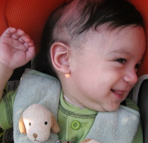 Hi, my name is Teresa and this is my story about my son Julian, diagnosed with Craniosynostosis in 2011. My husband John and I were blessed when our son Julian was born in March of 2011. Julian was born a week early (scheduled) due to my difficulty of sciatica on my left side from the pregnancy but was born a healthy 8 pounds 9 ounces. Throughout the first weeks at home, I noticed his head was more pointed then I remembered with my girls at that age. When I would have him on the changing table, he would never keep his head looking forward; it would lean to one side or the other. At his 1 month check up, our pediatrician noticed right away that something was not normal about the shape of his head and immediately ordered an x-ray that same day. I am grateful for his assertiveness and right away he put in for a referral to see a specialist in San Francisco.