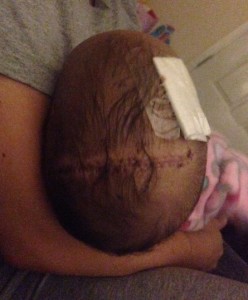 I noticed the difference in Londyn’s head shape and the palpable ridge immediately after birth. I am an RN by trade, so I didn’t want to be crazy mom/nurse and diagnose my child so I followed the doctor’s advice and pushed it off as birth trauma. Her head shape did not change after 2 weeks, so after lots of research I knew she had sagittal craniosynostosis. The nurse practitioner had never seen it before and was unsure if that was an accurate diagnosis so we were referred to a pediatric neurosurgeon who confirmed the diagnosis and so our journey began. Fast forward to 07 Dec 15, Londyn was 3 1/2 months old and had her first surgery.