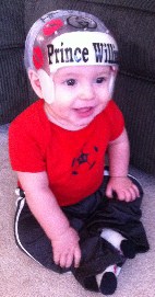 When we brought Will home, sleeping was the most difficult thing at first. He slept in the car seat and then we propped up his crib on text books. Finally, after a few days the doctors said he could sleep flat. We managed his pain with Tylenol and Ibuprofen. Occasionally, we had to give a suppository because he wouldn’t take the oral medicine. Will was able to celebrate his first Christmas at home and helmet free. He gave us so many reasons to celebrate! Right after Christmas is when we began our trips to Lawalls to get fitted for the helmet. I found a company on the Cranio Care Bears website, Bling your Band (http://www.blingyourband.com/), so we decorated Will’s helmet. Several times a week we traveled to DuPont for helmet, neurosurgeon, and plastic surgeon follow up appointments. Thankfully, at the time, I was a stay at home mom and could devote my days to doctors appointments. After 3 months in the helmet, Will graduated and no longer needed it!